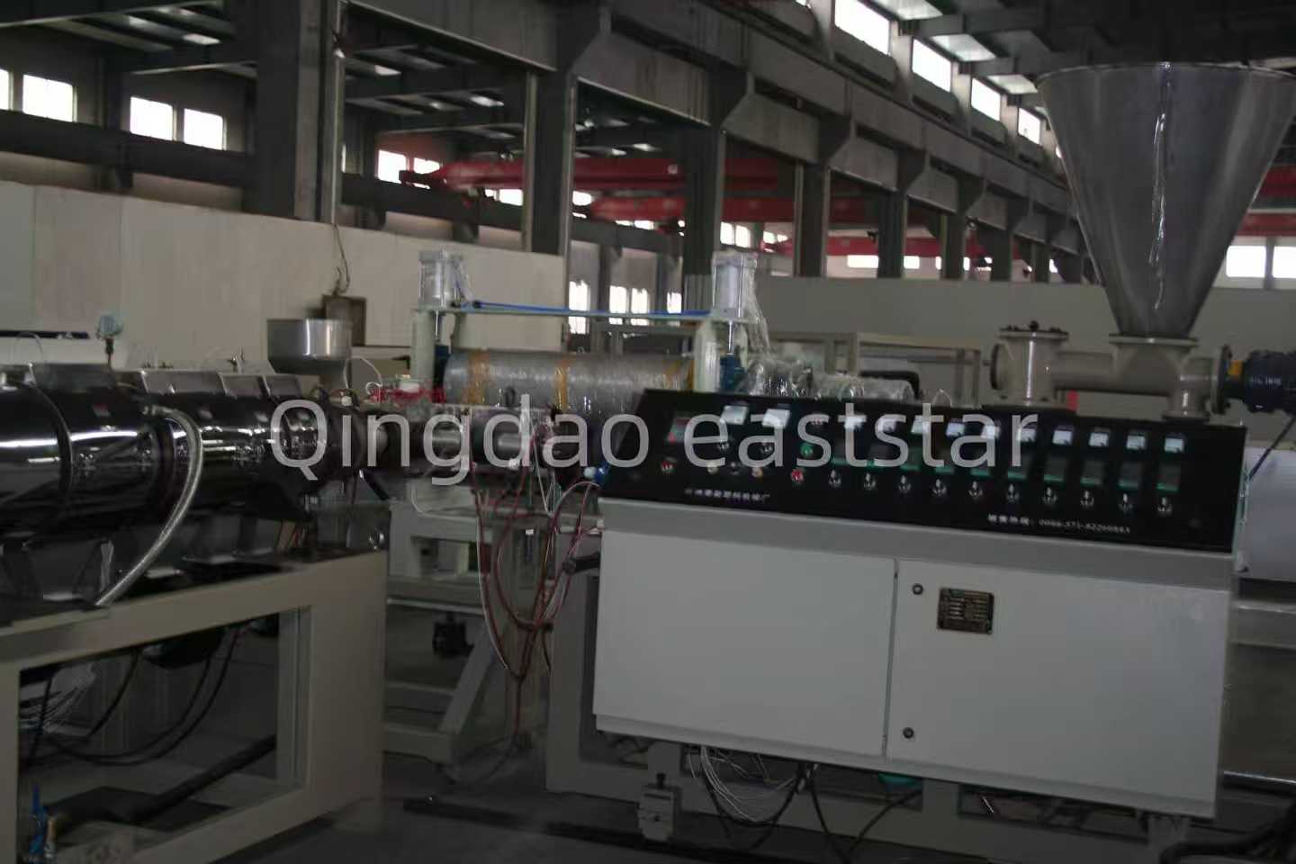 Na indústria de materiais de construção, as chapas onduladas coextrudadas PC+ASA, com excelente resistência às intempéries, resistência ao impacto e longa vida útil, estão gradualmente se tornando o material de cobertura preferido para plantas industriais, estufas agrícolas e outros edifícios. Linha de produção de chapa ondulada de coextrusão PC+ASA.