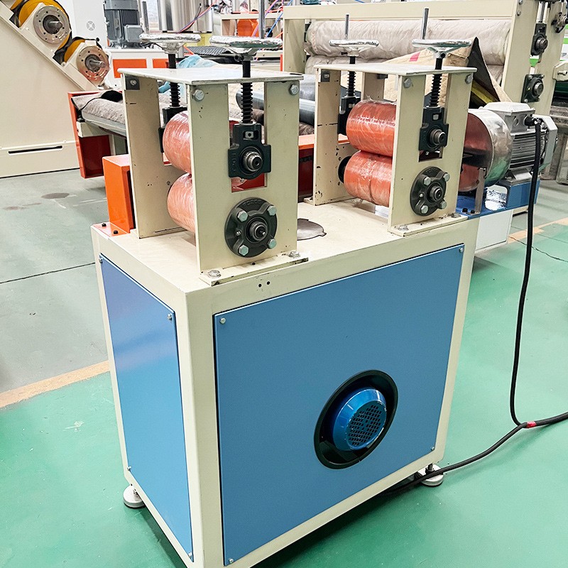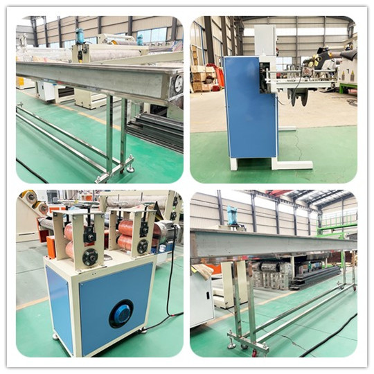 A máquina extrusora de tira de borda de saco PE inclui compressor de parafuso único - molde da cabeça da máquina - armazém de modelagem a vácuo - trator de tração - enrolamento