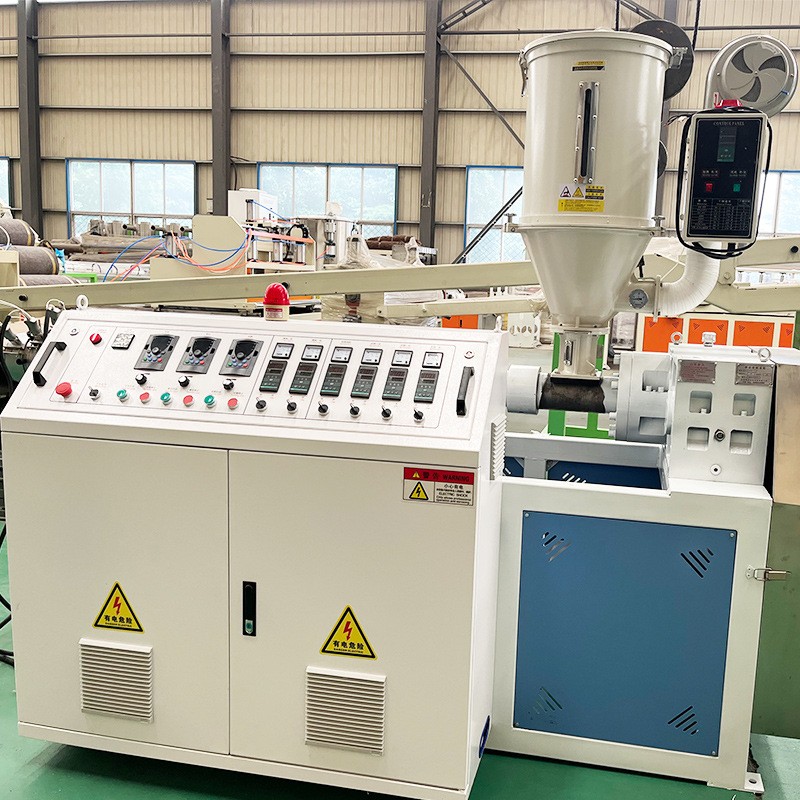 A máquina extrusora de tira de borda de saco PE inclui compressor de parafuso único - molde da cabeça da máquina - armazém de modelagem a vácuo - trator de tração - máquina de enrolamento ou máquina de corte 1. A máquina principal adota transmissão de máquina de parada de superfície de dente duro, o cilindro do parafuso é feito de liga de aço temperado de alta resistência (38CrMoALA) ou aço de liga temperado de alta resistência (9Cr18MoV), e a unidade principal da máquina adota controlador de frequência variável AC, sem manchas de óleo, baixo ruído; controle de temperatura O dispositivo adota um medidor inteligente de controle de temperatura e a precisão do controle de temperatura atinge ± 1 ℃; 2. O corpo principal da piscina de resfriamento de aço inoxidável é feito de material SUS304 importado; a estrutura do tanque de água adota um dispositivo de elevação roscado, que pode ser ajustado em três dimensões para cima, para baixo, para a esquerda e para a direita, tornando a operação muito conveniente; também é equipado com tanque de armazenamento de água em aço inoxidável, para que a água de resfriamento possa ser reciclada sem respingar no solo; 3. A máquina de tração possui controlador de frequência variável e a velocidade de tração é continuamente ajustável. 4. A máquina de enrolamento adota conversor de frequência para ajustar a velocidade para atingir a velocidade de produção ideal.