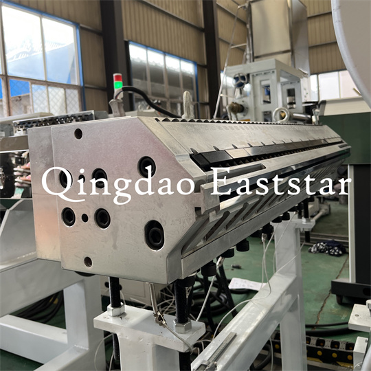 suporte, uma máquina de tração de rolo de borracha, uma máquina de corte e um dispositivo de correia transportadora. Equipamento extrusor de placa antiderrapante de PVC, largura do produto e