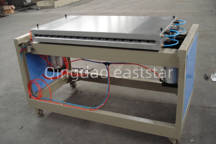 Uma matriz de modelagem de 800 mm de comprimento, combinada com um sistema de adsorção a vácuo e resfriamento de água, garante formação precisa de estrutura de onda e resfriamento uniforme. O sistema de tração utiliza rolos de borracha de estireno-butadieno, proporcionando força de tração máxima de 20KN, garantindo que o produto não se deforme ou estique durante a tração.