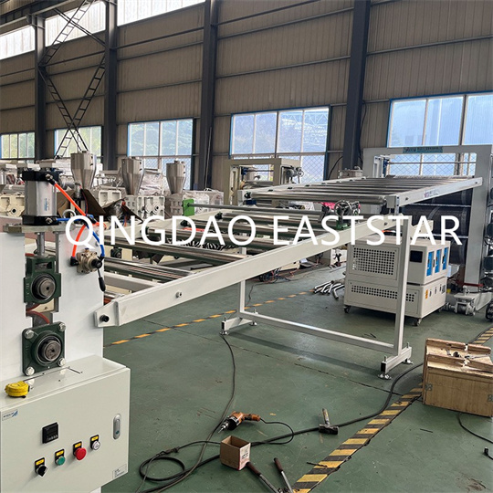 Equipamento extrusor de placa de iluminação de PVC: O equipamento consiste principalmente em uma extrusora de parafuso duplo, um molde de placa, uma calandra de três rolos, um suporte de resfriamento,
